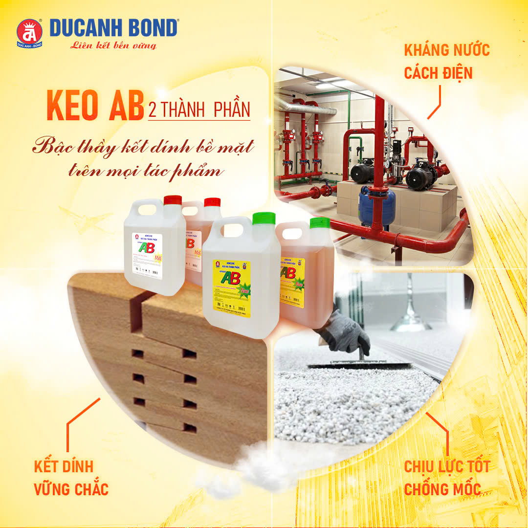 Keo AB dán gì tốt nhất? Đây là câu hỏi được nhiều người quan tâm khi lựa chọn keo dán hai thành phần AB cho các nhu cầu từ sửa chữa nhỏ trong gia đình đến thi công công trình lớn. Với đặc tính bám dính vượt trội và độ bền cao, keo AB 2 thành phần là giải pháp lý tưởng cho nhiều loại vật liệu như kim loại, nhựa, gỗ, đá, gốm sứ… Tuy nhiên, để phát huy tối đa hiệu quả của keo, người dùng cần hiểu rõ keo AB phù hợp dán gì và cách sử dụng đúng kỹ thuật. Bài viết dưới đây DUCANH BOND sẽ giúp bạn nắm rõ những vật liệu lý tưởng khi dùng keo AB cũng như hướng dẫn chi tiết cách sử dụng chuẩn xác nhất.