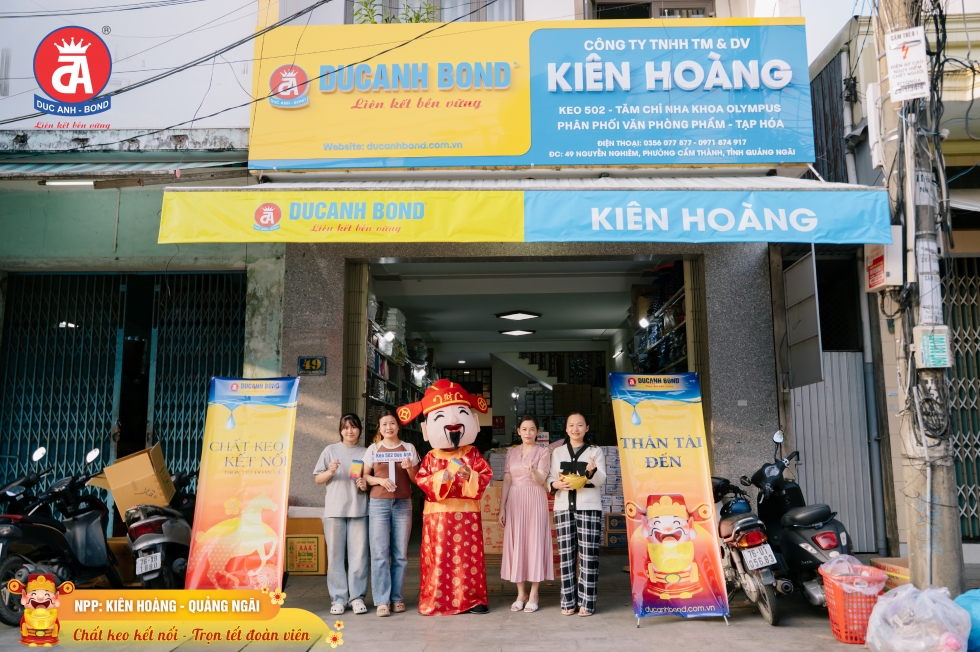 Trên hành trình phát triển, điều DUCANH BOND trân trọng không chỉ là sự tin tưởng dành cho sản phẩm, mà còn là tinh thần hợp tác lâu dài, cùng nhau xây dựng hệ thống phân phối ổn định, vững chắc tại từng địa phương. Nhà phân phối Kiên Hoàng chính là một trong những đối tác tiêu biểu tại Quảng Ngãi, góp phần đưa các sản phẩm keo dán DUCANH BOND đến gần hơn với người tiêu dùng, đáp ứng hiệu quả nhu cầu thi công, sửa chữa và sản xuất tại khu vực.