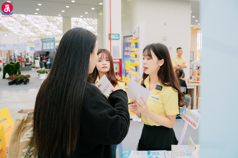 Khách hàng chăm chú lắng nghe tư vấn sản phẩm tại gian hàng